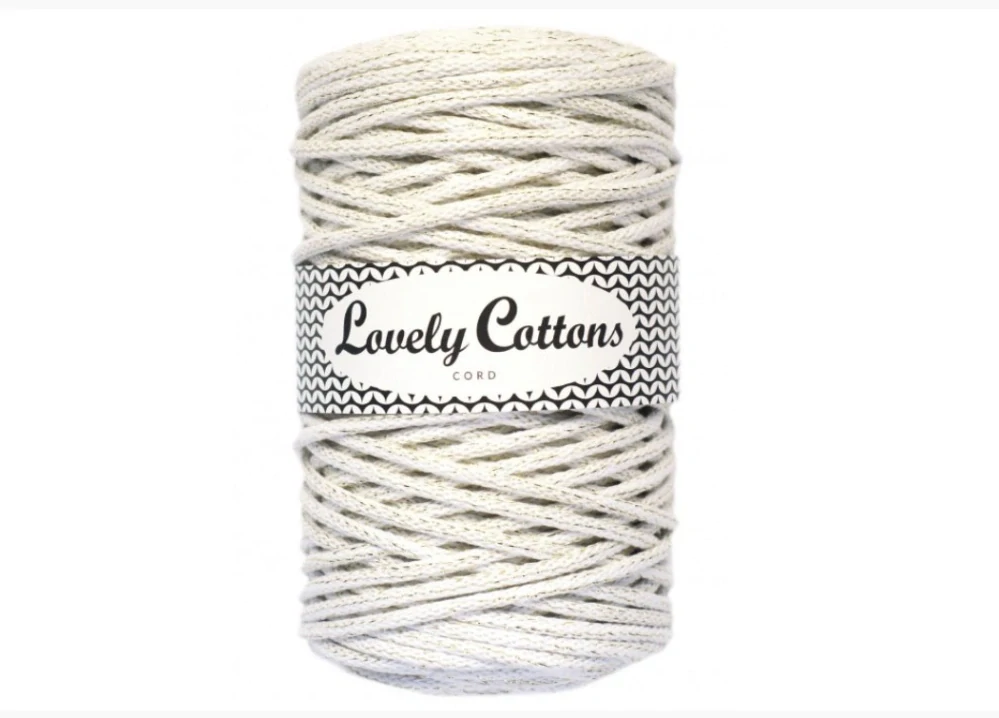 Bavlněná šňůra Lovely Cottons 5mm - Bílá se zlatou nitkou