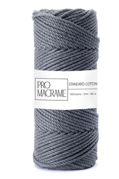 Bavlněná šňůra ProMacramé – STANDARD COTTON 3mm / 3PLY – antracitováSkladem 2 ks65 Kč/ ks54 Kč bez DPH