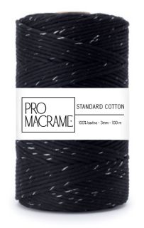 bavlněná šňůra ProMacrame – STANDARD cotton 3mm - černá se zlatou nitkouSkladem 26 ks45 Kč/ ks37 Kč bez DPH