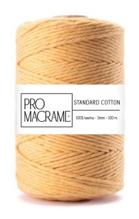 ProMacrame STANDARD cotton jsou skvělým kompromisem mezi top kvalitou a nízkou cenou. Jsou skvělou volbou, během tvorby vás nebudou nijak omezovat. Díky nízké ceně si můžete dovolit nakoupit více materiálu. Šňůra je mezi jinými 3mm šňůrami spíše tenčí, složená z 36 nitek.