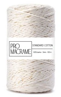 bavlněná šňůra ProMacrame – STANDARD cotton 5 mm - délka 50 m - Natural se zlatou nitkouSkladem 7 ks129 Kč/ ks107 Kč bez DPH