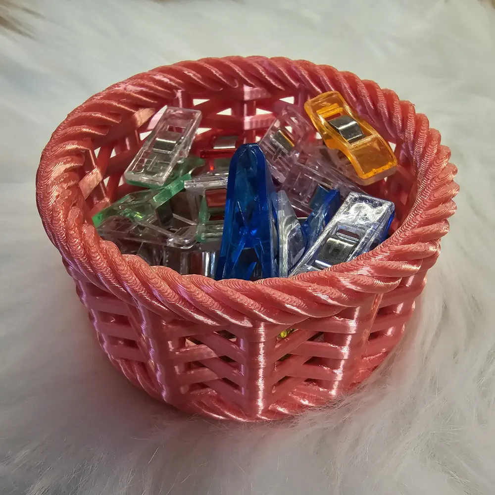 Tento malý 3D košíček XS je praktický pomocník do každé šicí dílny, kreativního koutku i domácnosti. Svým vzhledem připomíná ratanový košík, ale je vyroben moderní technologií 3D tisku z kvalitního PLA materiálu.