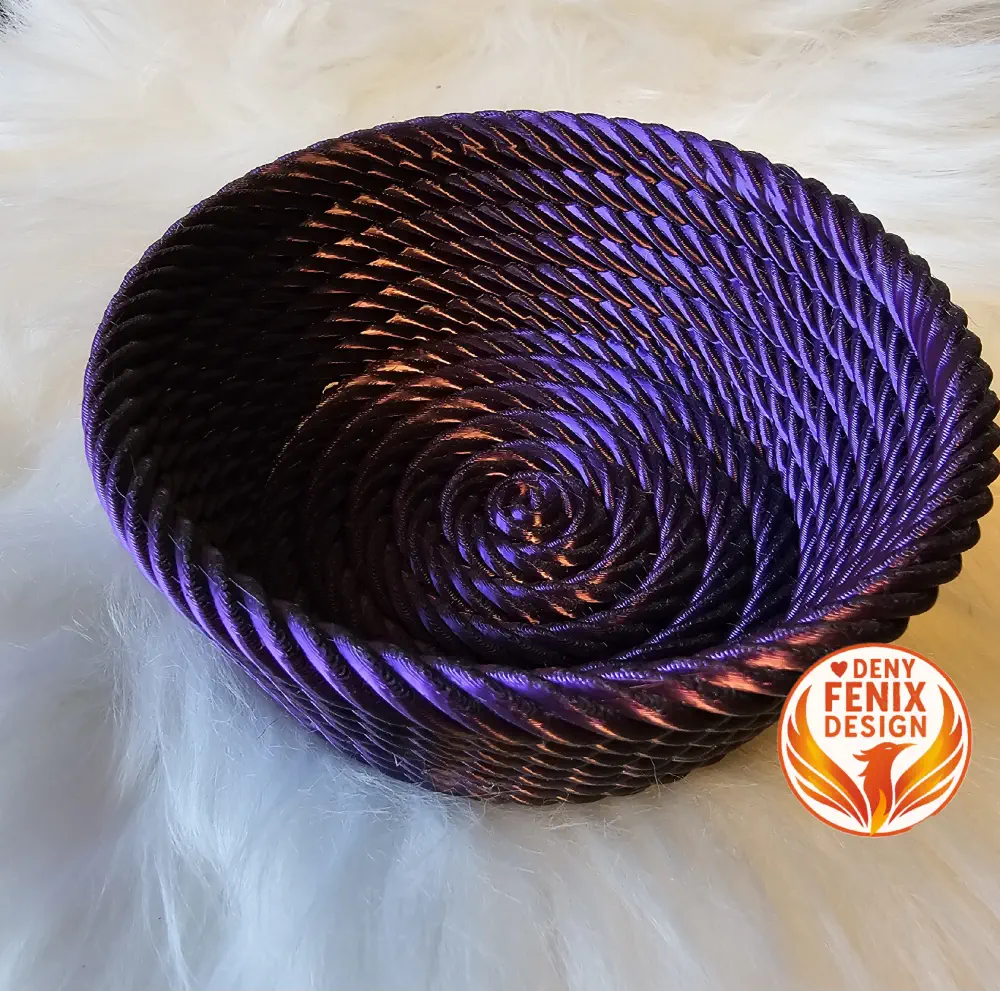 Designový 3D tištěný košík s magickým efektem měnící barvy – z fialové do černé podle dopadu světla. Jedinečný doplněk pro švadlenky, tvořilky i milovníky originálních dekorací.