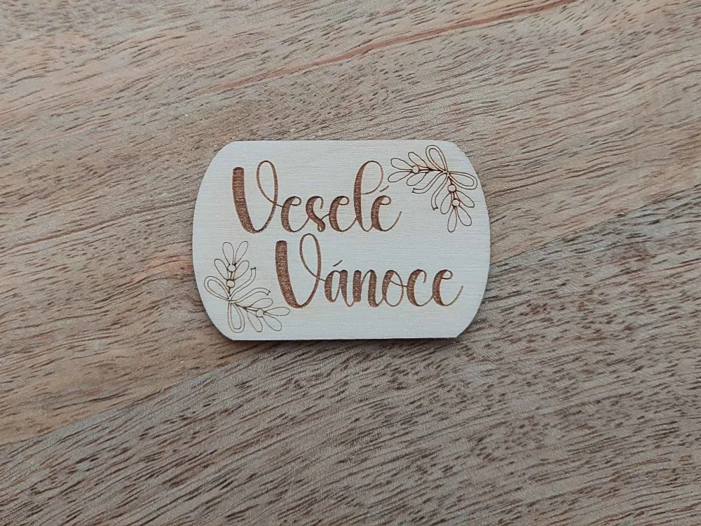 Dřevěná cedulka VESELÉ VÁNOCE - 5,5 x 3,5 cm