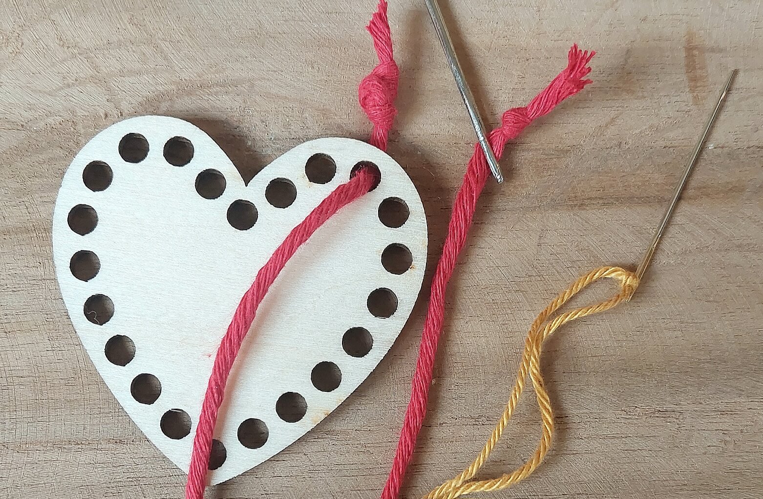 Děti od 3 let již zvládnou manipulaci a velkou jehlou. Je však potřeba jim na provázku udělat uzlík, aby se jehla nevyvlíkala.