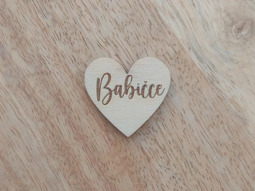 Dřevěné srdíčko BABIČCE - 2,5 cmSkladem 28 ks8 Kč/ ks7 Kč bez DPH