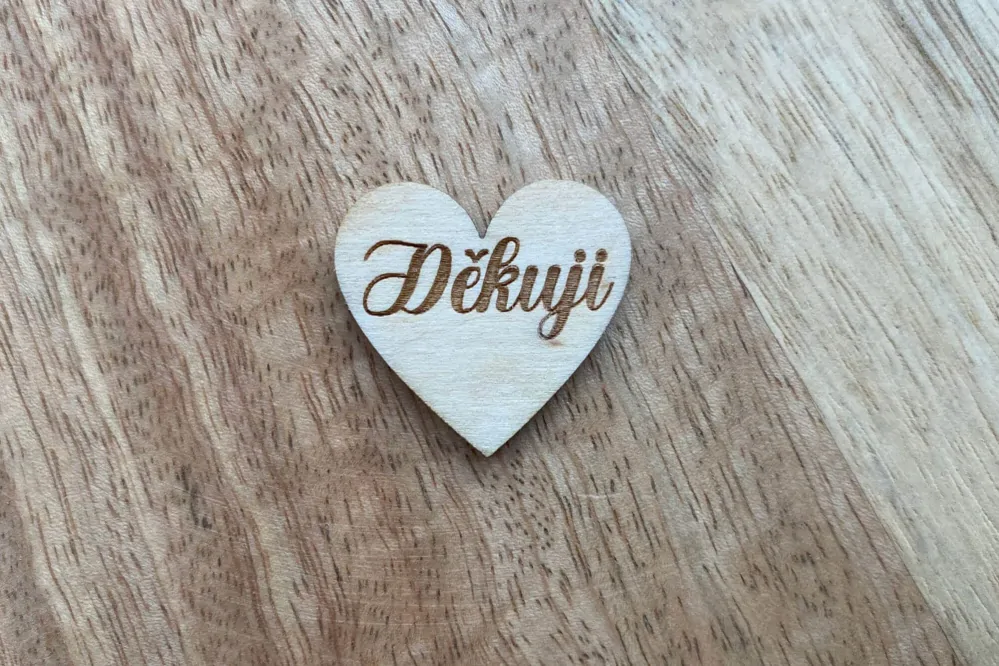 Dřevěné srdíčko DĚKUJI - 2,5 cmSkladem 60 ks8 Kč/ ks7 Kč bez DPH