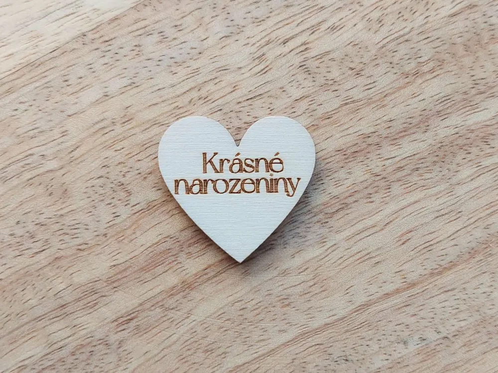 Dřevěné srdíčko KRÁSNÉ NAROZENINY - 2,5 cmSkladem 24 ks8 Kč/ ks7 Kč bez DPH