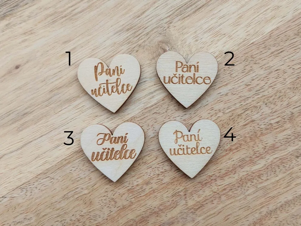 Dřevěné srdíčko PANÍ UČITELCE - 2,5 cmSkladem 104 ks8 Kč/ ks7 Kč bez DPH