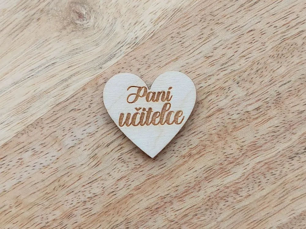 Dřevěné srdíčko PANÍ UČITELCE - 2,5 cmSkladem 17 ks8 Kč/ ks7 Kč bez DPH