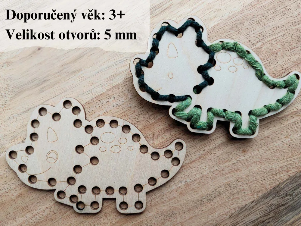 Dřevěný vyšívací dinosaurus pro malé kreativní ručičky
