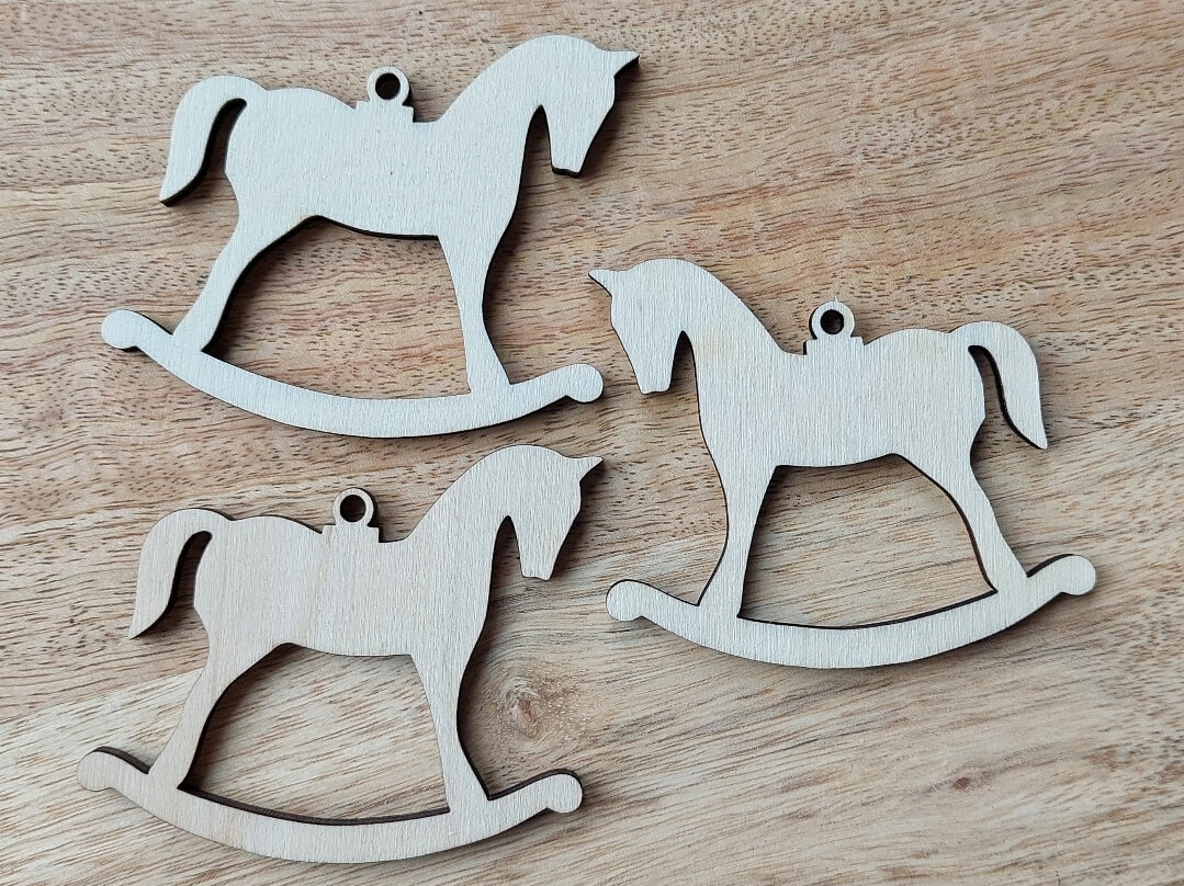 Koník je vyroben ze 4mm překližky. Výška 5,5 cm, šířka 7 cm.