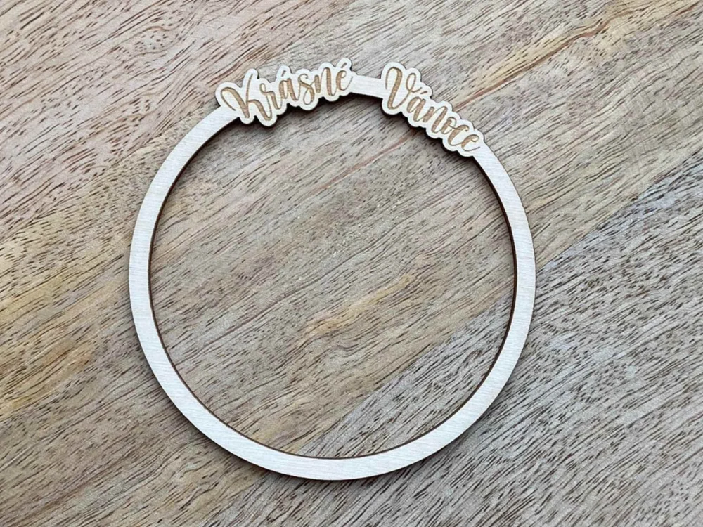 Dřevěný kruh pod macramé andělku - placatý KRÁSNÉ VÁNOCE - 10 cmSkladem 82 ks24 Kč/ ks20 Kč bez DPH