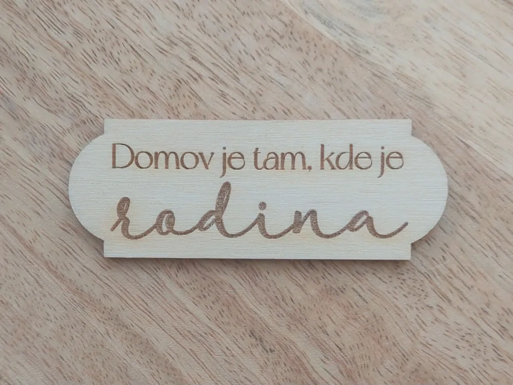 Dřevěný nápis DOMOV JE TAM,... - 7 x 2,5 cm