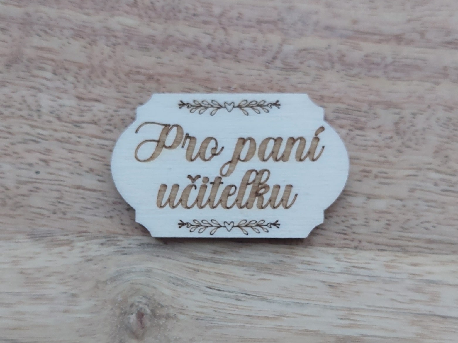 Dřevěný nápis PRO PANÍ UČITELKU - 3 x 5 cmSkladem 3 ks12 Kč/ ks10 Kč bez DPH
