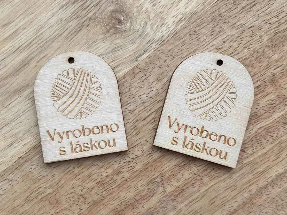 Dřevěný štítek VYROBENO S LÁSKOU - 4 x 3 cmSkladem 20 ks9 Kč/ ks7 Kč bez DPH