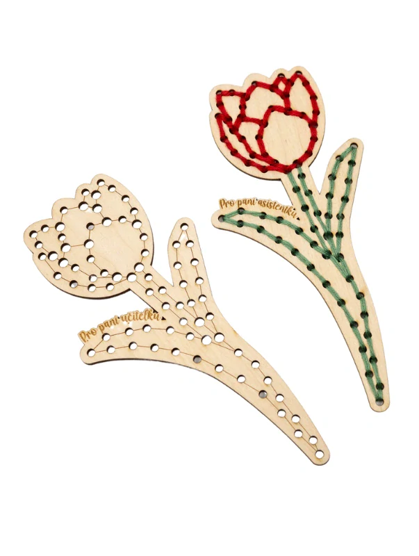 Dřevěný tulipán na vyšití - 19 x 9 cm - PANÍ UČITELCE/ASISTENTCE
