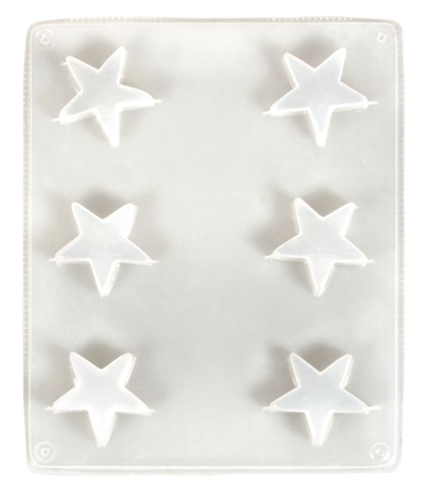 Plastová forma má rozměr cca 15,7x19 cm a obsahuje 6 hvězdiček o velikosti ø 3,6 cm a maximální hloubce cca 1,2 cm