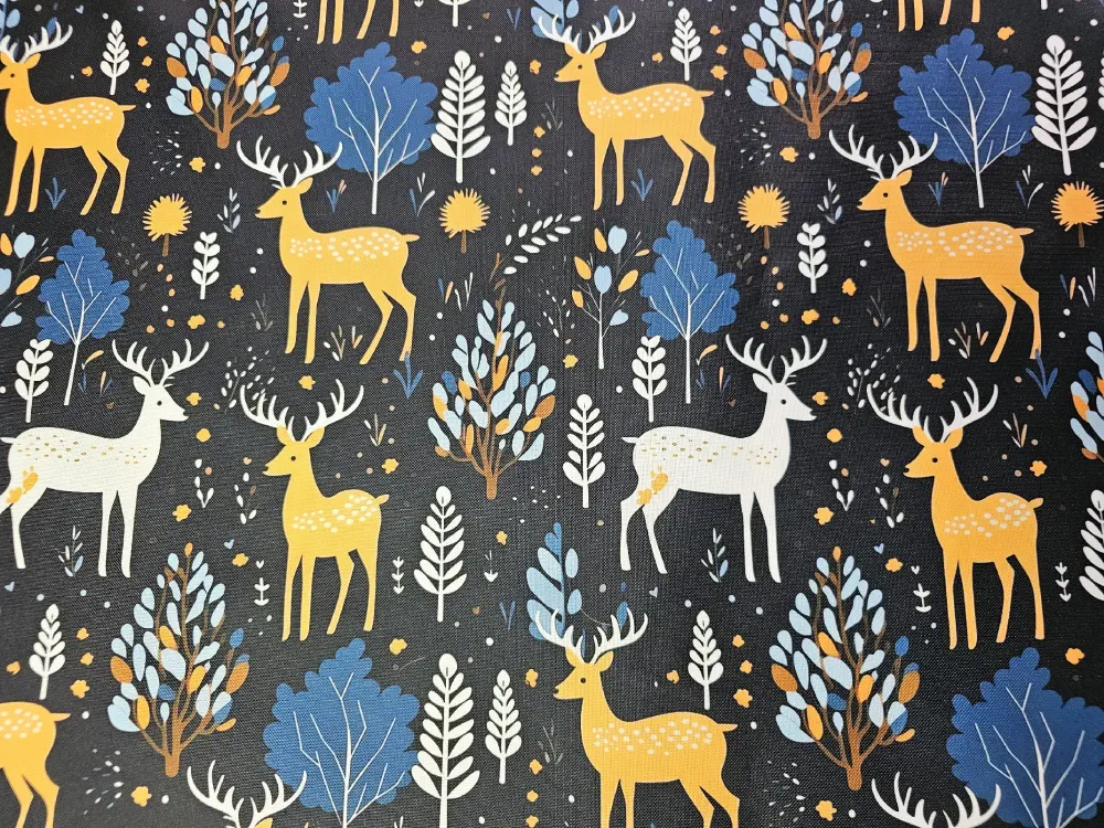 Vzor s jeleny a stromky. Velikost jednoho jelínka je cca 13 cm.