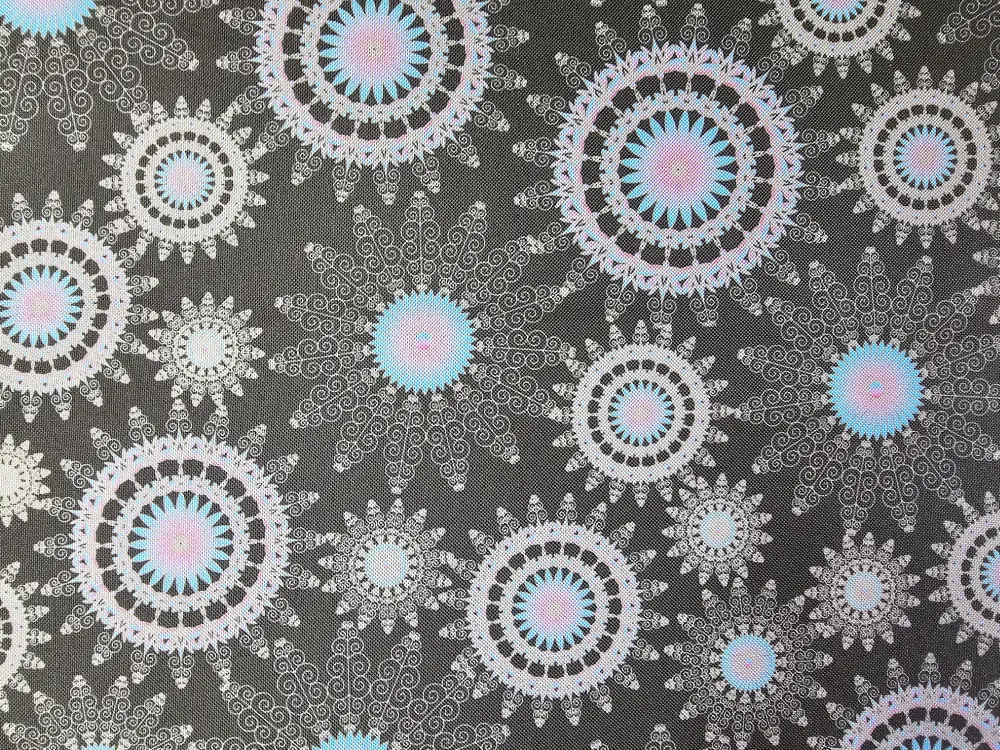 Tato krásná kočárkovina - batohovina se vzorem krajkové mandaly je vhodná na šití tašek, batohů, pelíšků pro domácí mazlíčky,pouzder na kosmetiku nebo psací potřeby.