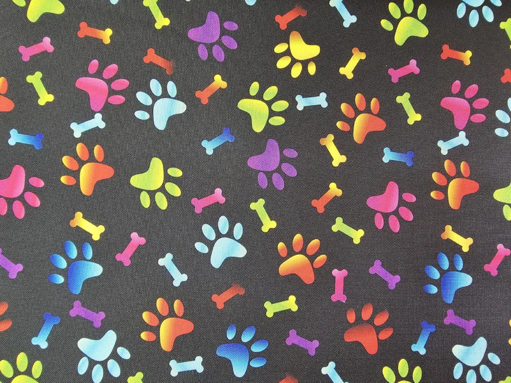 Tato krásná kočárkovina - batohovina se vzorem tlapek a kostiček je vhodná na šití tašek, batohů, pelíšků pro domácí mazlíčky,pouzder na kosmetiku nebo psací potřeby.
