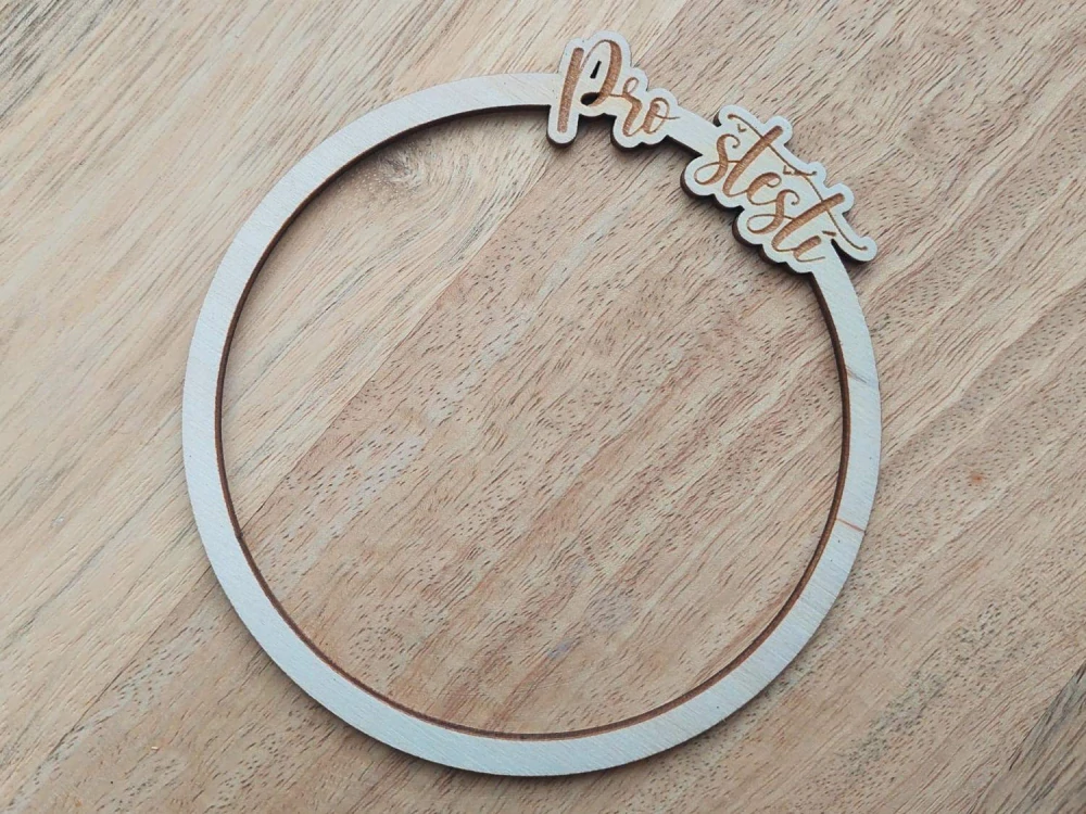 Dřevěný kruh pod macramé andělku - placatý PRO ŠTĚSTÍ - 10 cmSkladem 39 ks24 Kč/ ks20 Kč bez DPH