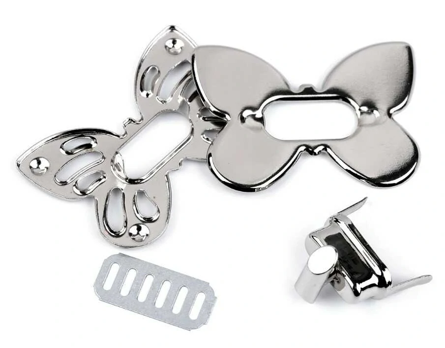 Toto zapínání na kabelku ve tvaru motýla je dekorativní a praktický prvek pro uzavírání kabelek nebo tašek s klopou. Je vyrobeno z kvalitního kovu s lesklou povrchovou úpravou, která dodá vaší kabelce luxusní vzhled. Motýlí design je detailně propracovaný a zapínání je navrženo tak, aby snadno udrželo klopu zavřenou. Montáž se provádí pomocí šroubků nebo zahnutím nožiček skrze plíšek, což zajišťuje pevné a bezpečné přichycení?.