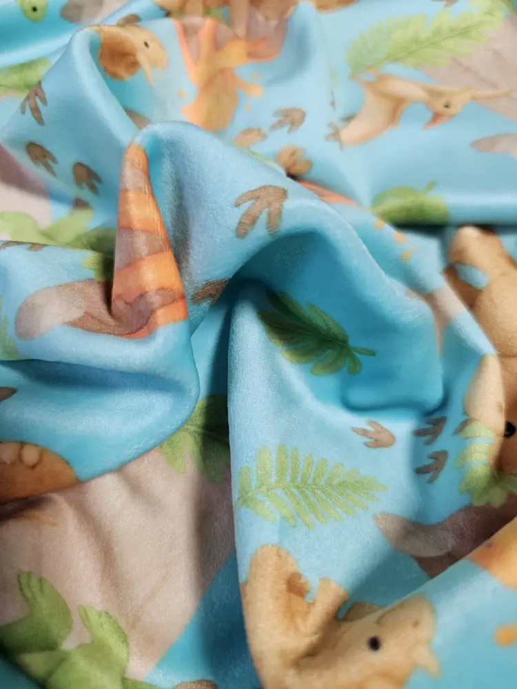 Když se dinosauři rozhodnou přeskočit do světa hebkého plyše, výsledek stojí za to! Autorský vzor s dinosaury a sopkou jsem nakreslila na přání svých kluků – a teď může zahřát i vaše malé objevitele. Microplyš je jemný, měkký a hřejivý, přitom pružný a skvěle se hodí na dětské oblečení i podšívky.