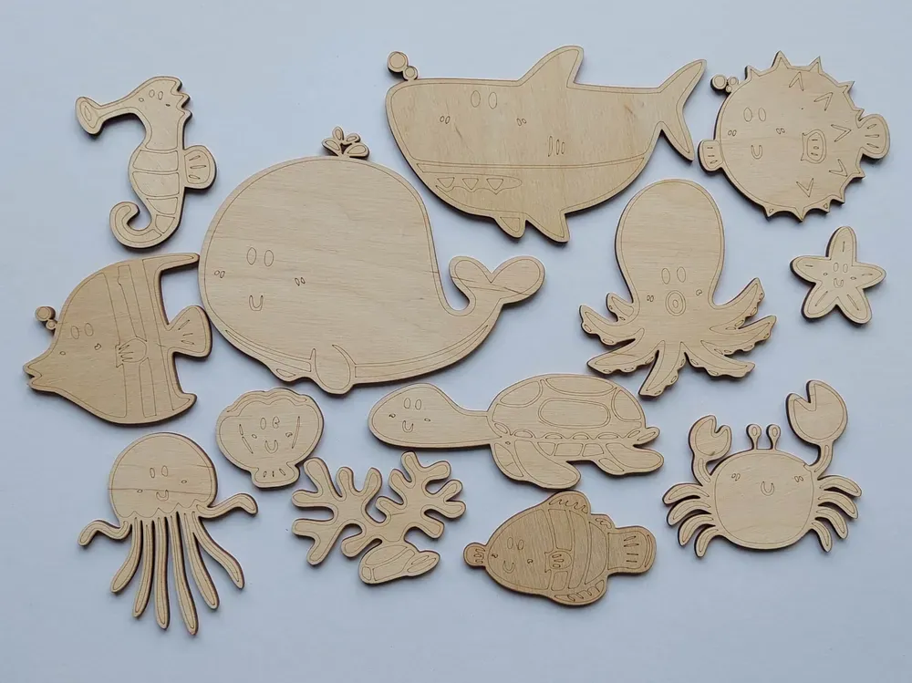 Ponořte se do podmořského dobrodružství s naším Mořským světem k dotvoření! Tyto dřevěné tvary jsou vyrobeny z přírodní březové překližky, čekající na to, aby se staly plátnem pro vaše umělecké vize. Pastelky, vodovky, tempery - nechte svou kreativitu vyplout na povrch a vytvořte si vlastní mořský svět. A pamatujte, fixy by měly zůstat mimo hru, protože se mohou rozpíjet.