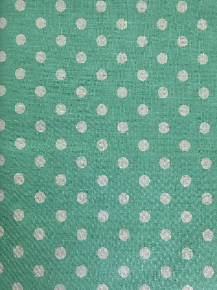 Plátno bílé puntíky na mintovéSkladem 3 m89 Kč/ m74 Kč bez DPH