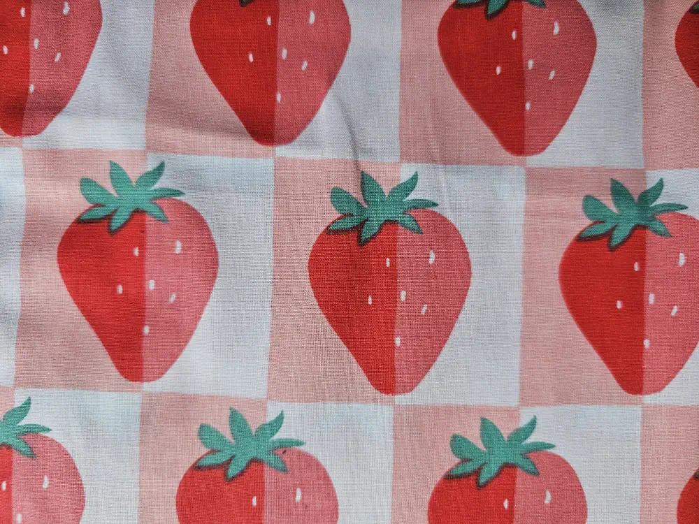 Bavlněná látka - tkanina se vzorem jahůdek Vhodná na bytové dekorace, vybavení dětské postýlky, hnízdečka, podšívky do kabelek a batohů..