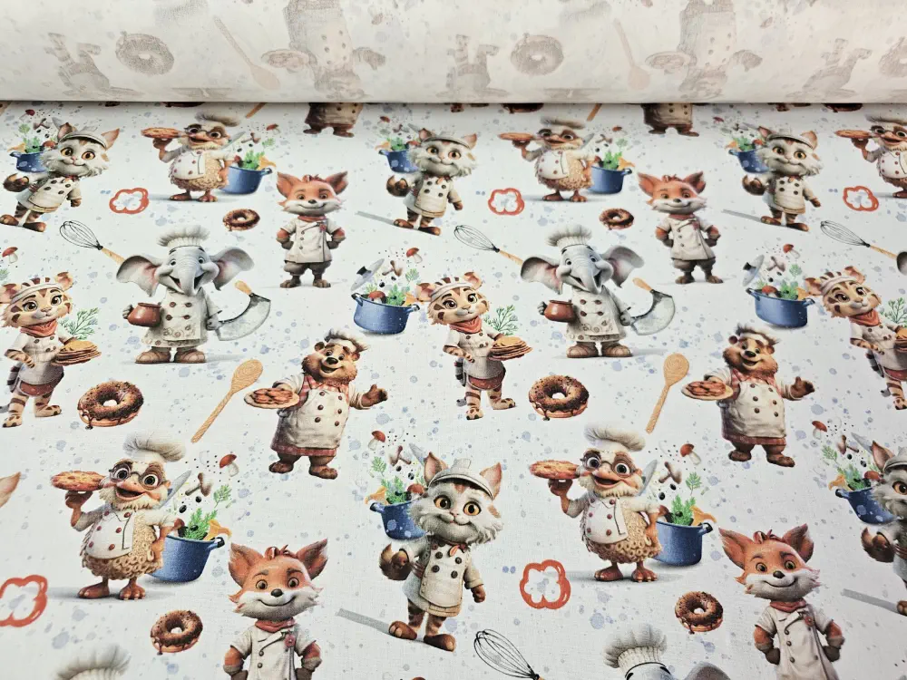 Bavlněné plátno se vzorem zvířat kuchařů.