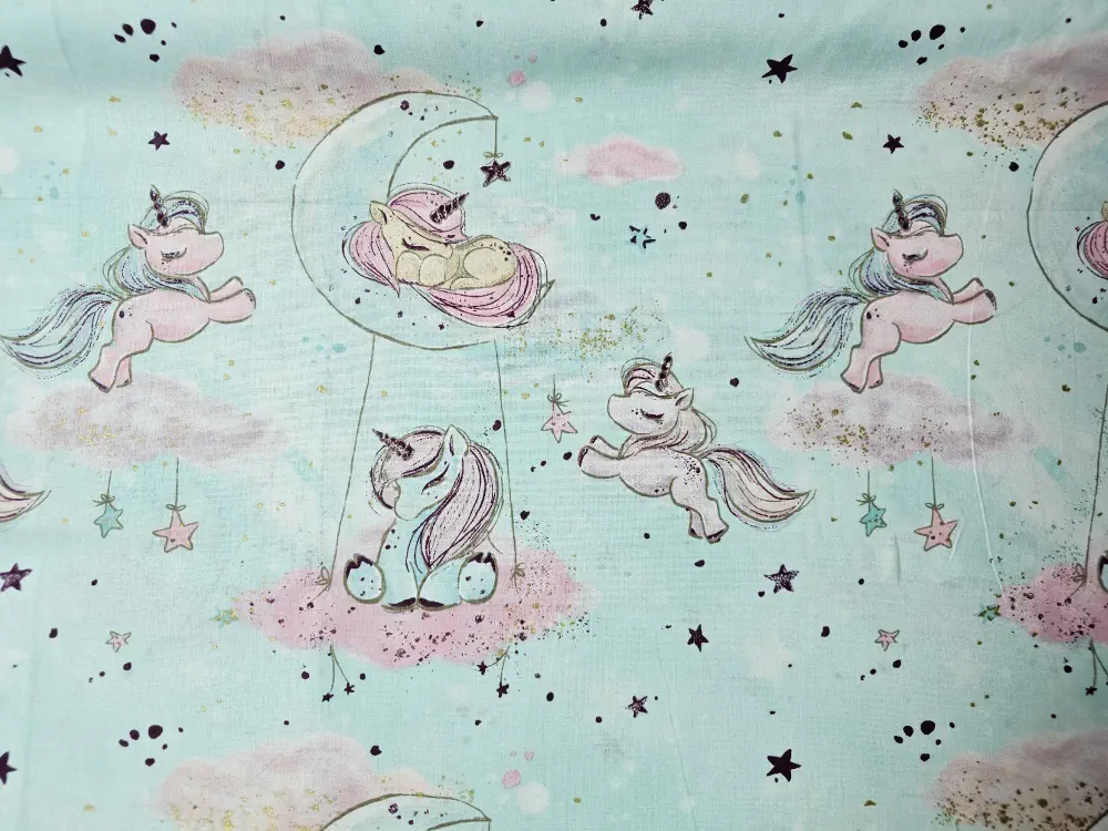 Plátno s jednorožcem - mintSkladem 9 m120 Kč/ m99 Kč bez DPH