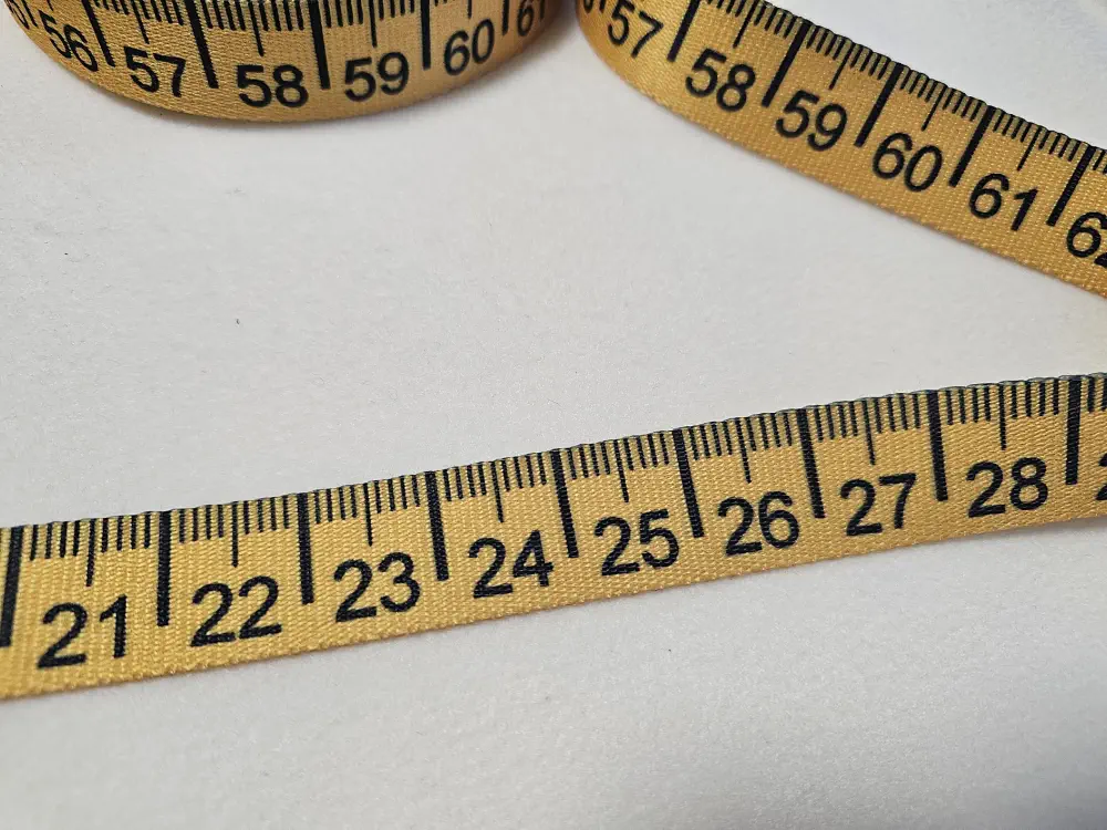 Popruh ve vzoru metru. 1 cm na poruhu = 2,5 cm reálně