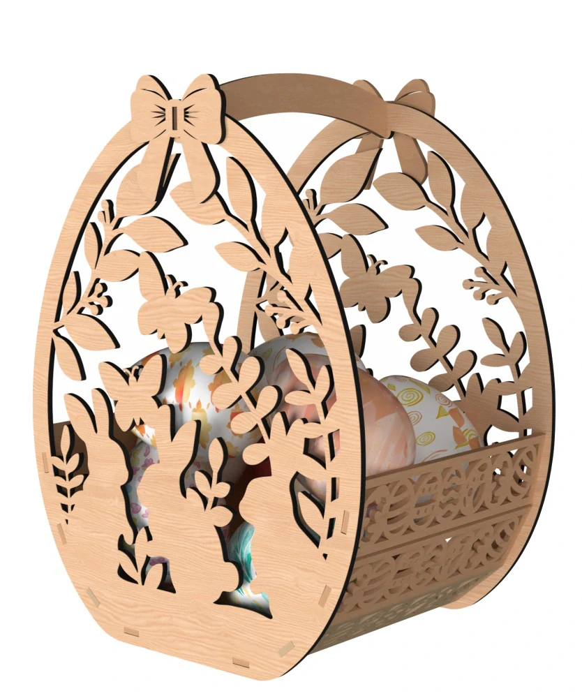 Tato kreativní DIY sada z březové překližky vám umožní složit si vlastní velikonoční košíček, který se stane ozdobou vašeho svátečního stolu.