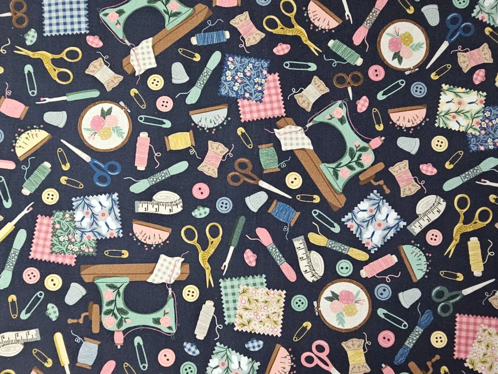 Bavlna od firmy Robert Kaufman Fabrics s krejčovským vzorem.