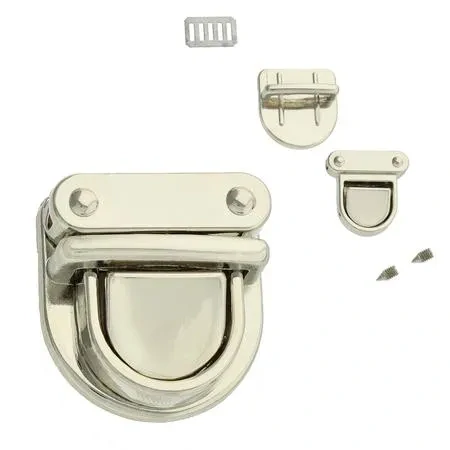 Elegantní sada kovového zapínání pro výrobu kabelek, tašek nebo brašen. Zapínání je vyrobeno z kvalitní slitiny s poniklovanou povrchovou úpravou, která zajišťuje odolnost proti opotřebení i elegantní vzhled. Rozměry 24×25 mm jsou ideální pro menší až středně velké tašky.